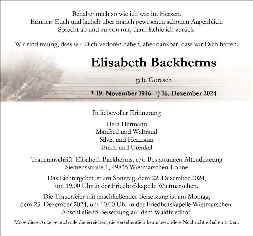 Trauerfeier, Friedhofskapelle Wietmarschen